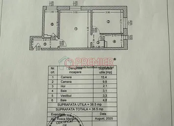 STU - SUPRAFAȚA TOTALĂ UTILĂ: 38.5 mp