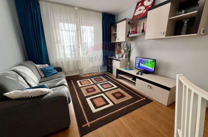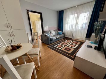 Mobilier: Complet mobilat. Dormitorul dispune de pat matrimonial si dressing, iar livingul include o canapea extensibila si spatii de depozitare.
