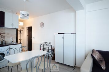 Balcon (generos) deschis,centrala termica (pe gaz) de apartament+termostat ambiental,aer conditionat,televizor smart,geamuri panoramice,canapea extensibila tip coltar in living,zona dining,pat matrimonial+dressing generos in dormitor,spatii depozitare,plita pe gaz+cuptor electric+hota incorporate,combina frigorifica,masina de spalat rufe, cafetiera.