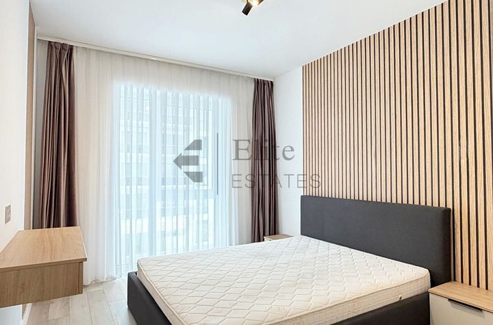 Finisajele moderne includ parchet laminat, mobilier realizat pe comanda in nuante de gri si lemn, bucatarie complet echipata cu blat aspect lemn si iluminare ambientala, iar suprafetele vitrate mari, completate de draperii vaporoase, asigura multa lumina naturala si creeaza o atmosfera calda si echilibrata in intreg apartamentul.