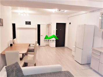 Agentia imobiliara Inovativ va ofera spre inchiriere apartament  2 camere, cu o suprafata utila de 40 mp plus un balcon generos de 8 mp,, pozitionat la etajul 3 al unui imobil cu un regim de inaltime P+3+ER, dotat cu interfon, izolat termic si lift, situat in City Residence, zona de constructii noi, cu strazi asfaltate si iluminat stradal, acces facil catre centrul Sibiului, in imediata apropiere a punctelor de interes public. Locuinta este compartimentata astfel: living cu bucatarie open space, dormitor, baie dotata cu cada si geam de aerisire, balcon in suprafata de aprox. 8 mp si loc de parcare privat. Accesul pe terasa se poate face atat din bucatarie cat si din dormitor. Apartamentul se inchiriaza complet mobilat si utilat, fiind amenajat modern si dispune de toate dotarile.