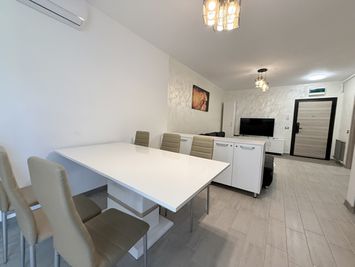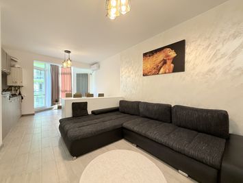 Se închiriază pe termen scurt și mediu, până la sfârșitul lunii mai, un apartament modern de 2 camere, situat în exclusivistul complex Alezzi Beach Resort. Locuința este complet mobilată și utilată, oferind tot confortul necesar pentru o ședere plăcută.