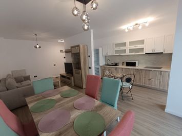 Mobilat: mobilat, Stare interior: finisat modern, Bucatarie: deschisa separata, Compartimentare: semi-decomandat, Usi interior: lemn masiv, Proprietarul plateste: telefon, Cablu tv, Stadiu constructie: finalizat, Structura: caramida, Strazi limitrofe: asfaltate, Orientari: est, Vedere: vedere panoramică