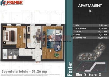 Premier Imobiliare va ofera spre vanzare un apartament de 2 camere decomandat cu o suprafata utila de 51,26 mp, situat intr-un bloc exclusivist,design-ul minimalist, cu ferestre largi ce creeaza spatii luminoase si confortabile, dar si o conexiune naturala intre interior si exterior.