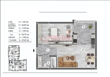 STU - SUPRAFAȚA TOTALĂ UTILĂ: 57.6 mp,SUPRAFAȚĂ TERASE/BALCOANE: 3.9 mp