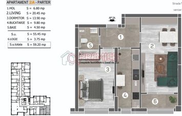 STU - SUPRAFAȚA TOTALĂ UTILĂ: 59.2 mp,SUPRAFAȚĂ TERASE/BALCOANE: 3.75 mp