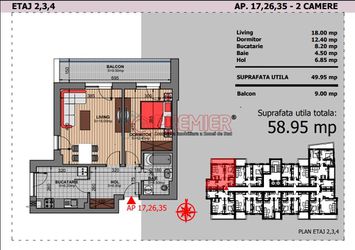 STU - SUPRAFAȚA TOTALĂ UTILĂ: 59 mp,SUPRAFAȚĂ TERASE/BALCOANE: 9 mp