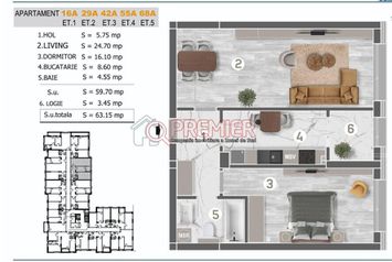 Suprafata utila: 63,15 mp + balcon 3,45 mp