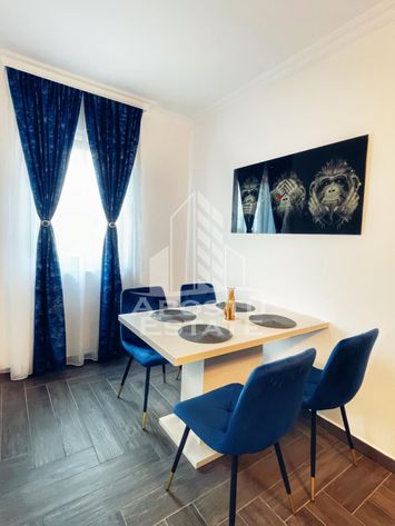 Apartamentul este complet mobilat si utilat cu electrocasnice si dotari moderne. Beneficiaza de incalzire in pardoseala pentru un confort termic sporit in sezonul rece, termostat pentru reglarea temperaturii dupa preferinte, aer conditionat pentru zilele calduroase, Samsung Smart TV pentru divertisment, masina de spalat haine si bucatarie complet echipata cu toate cele necesare.