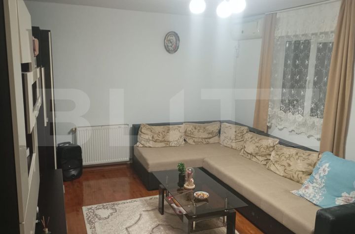Apartamentul este complet mobilat și utilat, fiind pregătit pentru a fi locuit imediat. Dispune de centrală termică proprie, aparat de aer condiționat, mobilier în stare foarte bună și electrocasnice funcționale. Compartimentarea decomandată oferă spațiu optim și o circulație eficientă între camere, iar orientarea pe două părți asigură lumină naturală pe tot parcursul zilei.