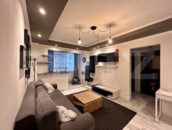 Designul interior îmbină tonuri calde și accente moderne, creând o atmosferă relaxantă. Livingul, spațios și luminos, este perfect pentru seri de relaxare, cu o canapea generoasă și un spațiu inteligent amenajat care include un mini-bar/zonă de servire – ideal pentru a savura un pahar de vin. Camera este pusă în valoare de un tavan fals cu iluminare ambientală și o galerie de tablouri. De asemenea, beneficiați de un balcon închis, ce poate servi ca un mic spațiu de lectură sau o zonă de mic dejun liniștită.