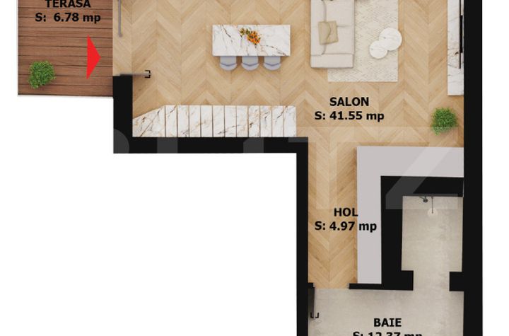 Blitz îți propune un mic exercițiu: Imaginează-ți că pășești într-o poveste urbană cu două camere dispuse pe două nivele, unde fiecare detaliu este gândit pentru confort, intimitate și eleganță. La nivelul inferior, livingul spațios cu bucătărie open-space și zonă de dining creează cadrul perfect pentru momente de socializare și relaxare. Lumina naturală și accesul către terasa cochetă completează atmosfera caldă și echilibrată a spațiului.