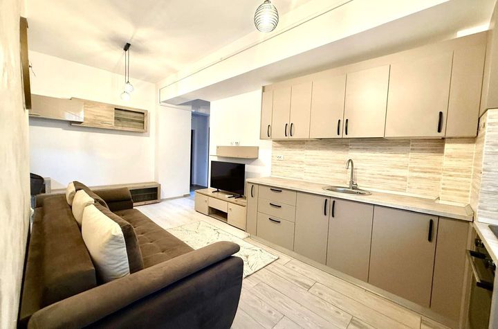 Mobilat: mobilat, Stil mobilier: modern, Stare interior: renovat, Bucatarie: deschisa inclusa in living, Mobilata, Echipata, Complet echipata, Frigider, Cuptor electric, Hota, Compartimentare: open space, Vizionari: imobil liber, Alte mentiuni: nu accepta animare de companie, Vechime imobil: nou, Stadiu constructie: finalizat, Tipuri de apartamente: 2 camere, Confort: i sporit, Structura: cadre, Acces: acces stradal, Orientari: sud