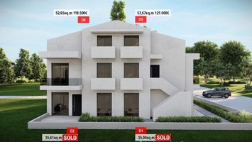 Apartament nou în ansamblul "Ismene", pe două nivele, suprafață totală 52,65 mp; compus din 2 dormitoare, living-cu-bucătărie (salokouzina) și 2 băi.