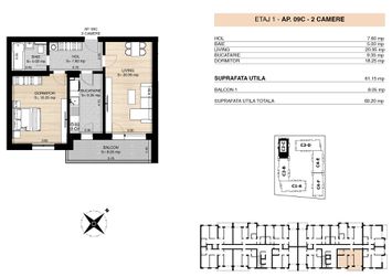 STU - SUPRAFAȚA TOTALĂ UTILĂ: 69.2 mp,SUPRAFAȚĂ TERASE/BALCOANE: 8.05 mp