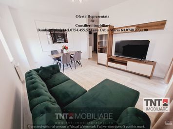 Apartamentul este luminos, mobilat complet, cu finisaje de cea mai buna calitate, living (canapea extensibila) cu acces la balcon, bucatarie inchisa cu acces pe terasa, complet utilata cu electrocasnice de ultima generatie (AC, hota, aragaz, cuptor, frigider, congelator, masina de spalat vase+rufe, Smart TV).
