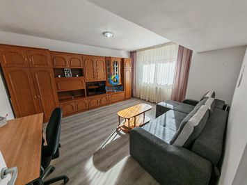 BV Imob va propune spre Inchiriere un Apartament 2 Camere, Liber din 15 Ianuarie, Vizionarile incep din 5 Ianuarie, situat in zona Racadau, reper Pietonala Racadau, intr-un imobil construit in anii 1984. Apartamentul este confort 1 Decomandat, structura beton, etaj 3 din 6, avand o suprafata utila de 47 mp, cu o suprafata totala de 57 mp. Apartamentul descris este compus din : 2 camere din care : 1 Living, 1 dormitor, 1 bucatarie, 1 grup sanitar, 1 debara, 1 balcon. Apartamentul are ca si imbunatatiri : calorifere: otel; ferestre: termopan; incalzire: centrala proprie; pereti: faianta, lavabil; podele: parchet, gresie; usa intrare: metal. Imobilul este situat in apropiere de centre comerciale (Profi, Lidl, Penny, Mega Image, Piata Astra, Kaufland, Magnolia, Parcul Ursul, Parcul Trandafirilor la 1-8 minute distanta cu masina), statie RATB, scoli, gradinita. Pretul acestei proprietati este de 400 Euro. Locuri de parcare in apropriere de bloc. Pentru mai multe informatii