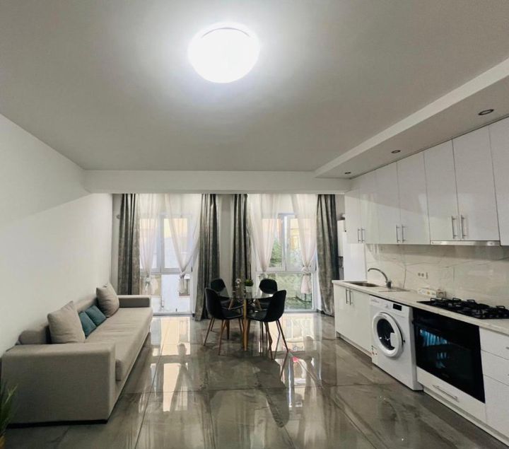 Acest apartament modern este complet mobilat și utilat, ideal pentru cei care apreciază designul modern și funcționalitatea.