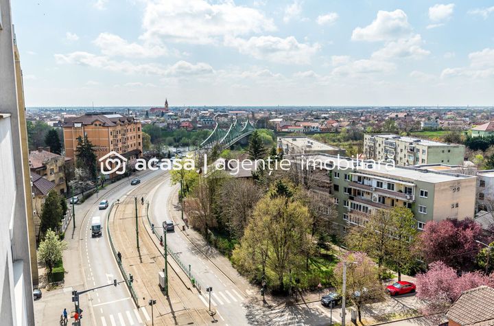 Situat la etajul 9 din 10, intr-un bloc anvelopat, cu casa scarii renovata si lift nou, apartamentul ofera o priveliste deosebita asupra orasului cat si a Muresului.