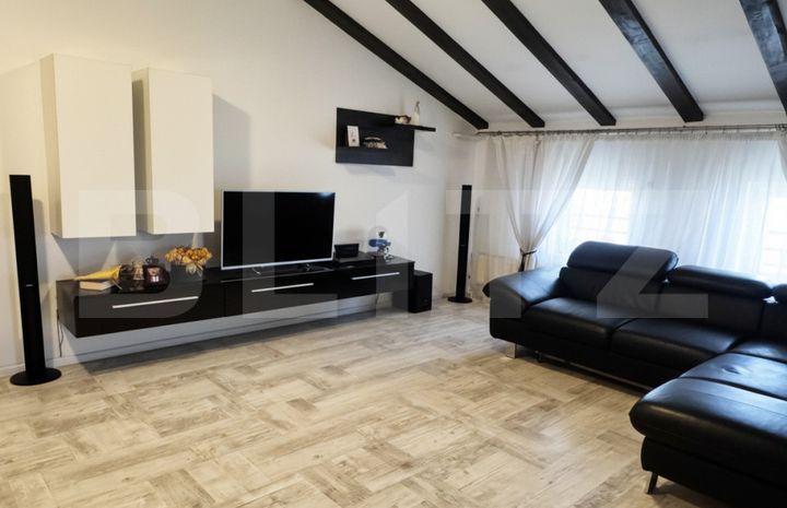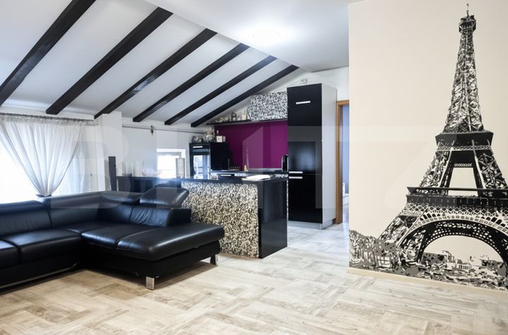 - Living generos cu bucătărie open-space, complet mobilată și utilată