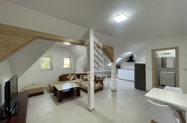 APOSTU ESTATE va propune spre inchiriere un apartament proaspat amenajat, de 64 mp, cu doua camere, la Mansarda, situat in zona Calea Sagului/Iuliu Maniu.