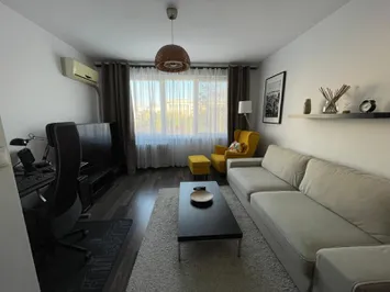 Mobilat: mobilat, Stil mobilier: modern, Stare mobilier: buna, Materiale mobilier: pal/pfl, Stare interior: renovat, Bucatarie: mobilata, Echipata, Compartimentare: decomandat, Usi interior: mdf, Vechime imobil: renovat, Stadiu constructie: finalizat, Stare imobil: exceptionala, Tipuri de apartamente: 2 camere, Acces: acces stradal, Acces mixt, Vedere: vedere mixta