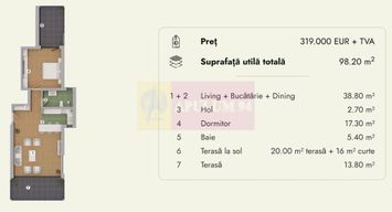 Suprafata utila totala: 98,20 mp