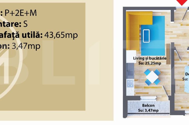 ✔ Suprafață: 43,65 mp