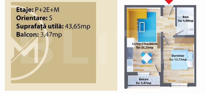 Suprafața utilă 43 mp