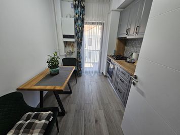 Mobilat pentru a oferi o utilizare eficientă a spațiului, alături de finisajele de calitate superioară, apartamentul este dotat cu: tâmplărie pvc culoare wenge, centrală termică cu încălzirea în pardoseală, aer condiționat, ușă metalică, vopsea decorativă, parchet laminat, gresie, faianță, interfon, loc de parcare, etc.