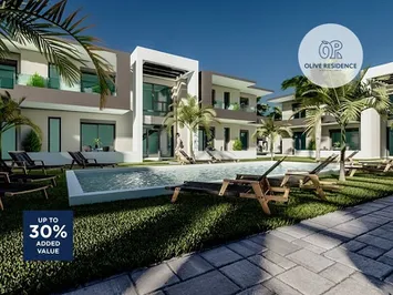 Face parte din complexul Olive Residence, compus din 54 de locuinţe, într-un ansamblu închis cu piscine comune, spaţii verzi amenajate şi locuri de parcare; predarea complexului este programată pentru 30/06/2027.