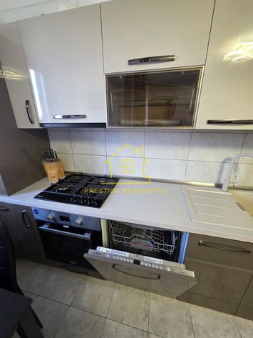 Mobilat: mobilat, Stil mobilier: modern, Stare mobilier: nou, Stare interior: nou, Bucatarie: deschisa inclusa in living, Mobilata, Modern mobilata, Combina frigorifica, Cuptor microunde, Aragaz, Cuptor electric, Hota, Masina de spalat vase, Usi interior: celulare, Vechime imobil: nou, Stadiu constructie: finalizat, Stare imobil: exceptionala, Tipuri de apartamente: 2 camere