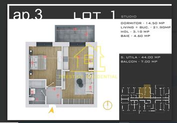 Suprafata - 44mp + 7mp balcon = total 51mp