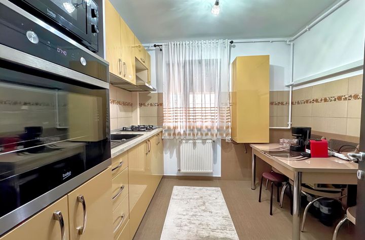 Mobilat: mobilat, Stare interior: finisat modern, Bucatarie: mobilata, Echipata, Frigider, Aragaz, Hota, Inchisa, Compartimentare: decomandat, Usi interior: celulare, Proprietarul plateste: telefon, Cablu tv, Curte: comuna, Stadiu constructie: finalizat, Structura: beton, Confort: i, Strazi limitrofe: asfaltate