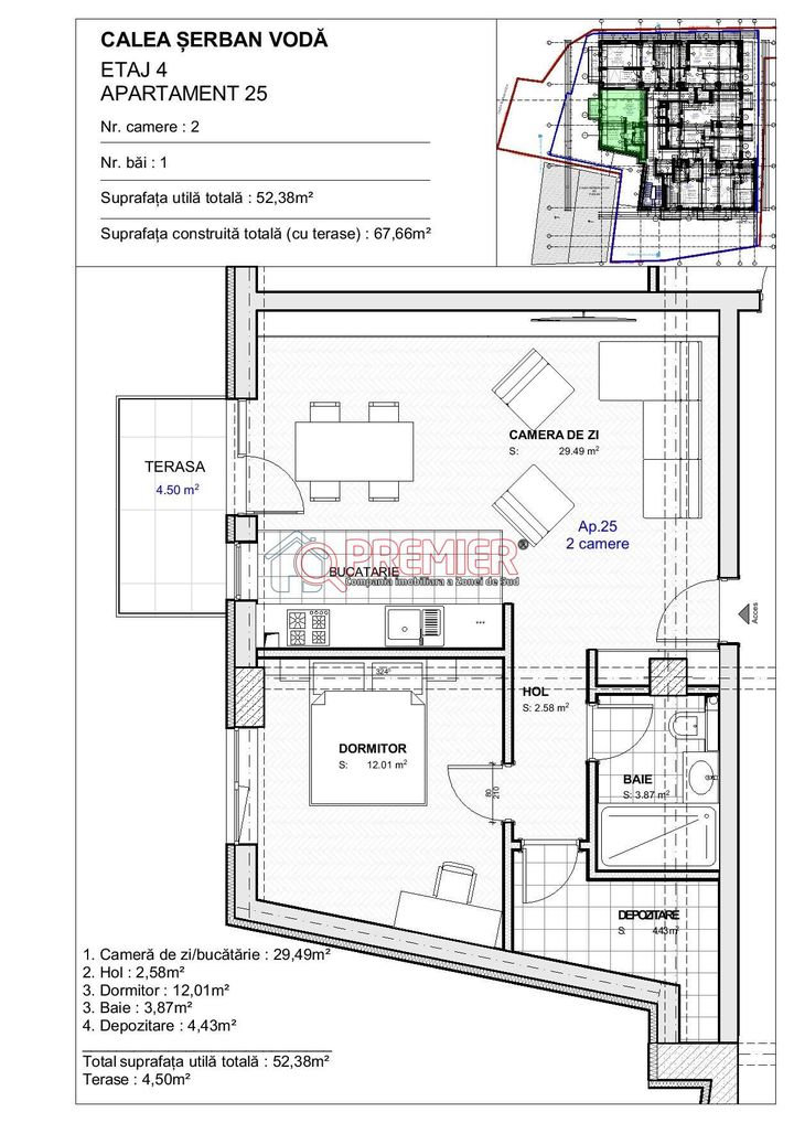 STU - SUPRAFAȚA TOTALĂ UTILĂ: 56.88 mp,SUPRAFAȚĂ TERASE/BALCOANE: 4.5 mp
