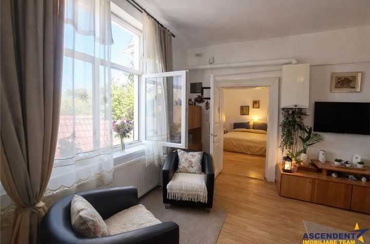 Este un apartament mic, dar plin de farmec, situat la etajul 1 intr o cladire cu o curte comuna si linistita (proprietara spune ca de 7 ani nu are decat un vecin)