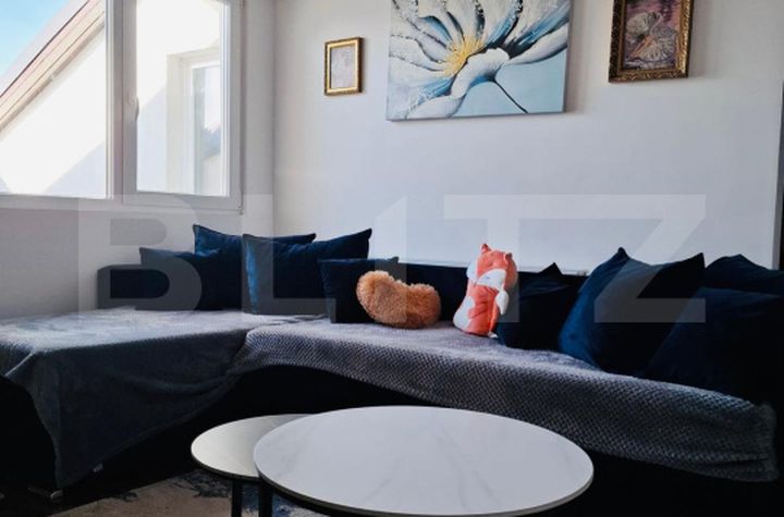 Apartamentul este complet mobilat si utilat cu electrocasnice de calitate superioara. Dispune de o terasa de 8 mp - o veritabila oaza de liniste, ce ofera o priveliste panoramica asupra zonei -, precum si un pod, care poate fi amenajat in multiple moduri, inclusiv ca o a treia camera. Un alt plus al apartamentului este reprezentat de confortul termic sporit, atat pe timp de iarna, cat si pe timp de vara.