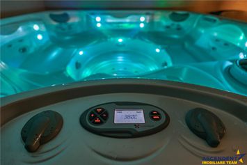 Terasa principala, discret pozitionata dispune actualmente si de jacuzzi performant( acesta din urma poate fi achizitionat, extra pretul expus).