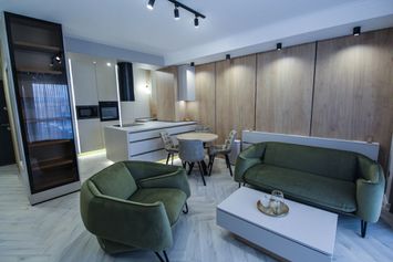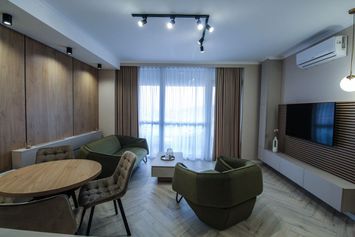 Mobilat: mobilat; mobilat lux, Stare interior: ultrafinisat, Bucatarie: deschisa separata, Mobilata, Echipata, Frigider, Aragaz, Hota, Masina de spalat vase, Compartimentare: decomandat, Usi interior: lemn masiv, Pvc, Proprietarul plateste: telefon, Cablu tv, Stadiu constructie: finalizat, Structura: beton, Strazi limitrofe: asfaltate, Vedere: vedere panoramică, Vedere spre oraș