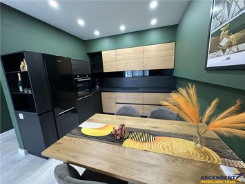 Dotata cu electrocasnice premium (cuptor, plita, hota, frigider, masina de spalat vase, cafetiera), plus vesela completa, bucataria este pregatita pentru orice – de la un mic dejun rapid la o cina gourmet cu prietenii.