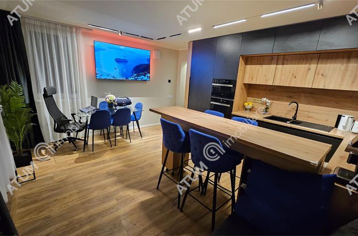 Va oferim spre inchiriere un penthouse de 50 mp utili + terasa de 34 mp, curte proprie de 60 mp si 2 locuri de parcare, conceput pentru confort, siguranta si un stil de viata exclusivist, situat intr-o zona rezidentiala noua din Turnisor, Sibiu.