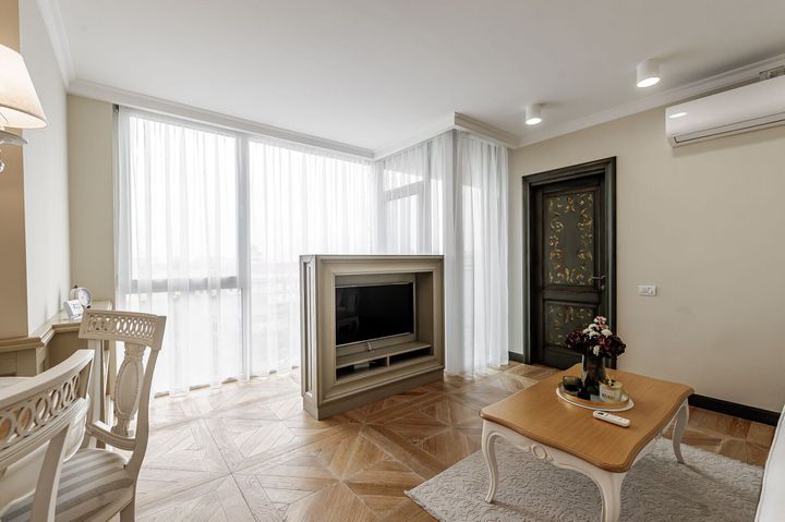 Finisaje: parchet laminat, Vopsea lavabila, Geamuri termoizolante - pvc, Tapet, Dotari: aer conditionat, Usa metalica, Iluminat exterior, Videointerfon, Televizor; cabină de duș