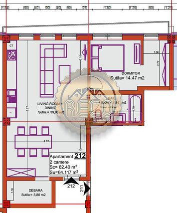 Apartament compus din: dormitor, living, bucatarie, debara, hol, baie, balcon