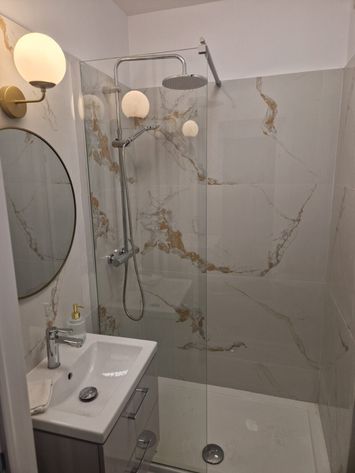 Finisaje: parchet laminat, Gresie, Faianta, Dotari: aer conditionat, Interfon, Usa metalica, Iluminat exterior; cabină de duș
