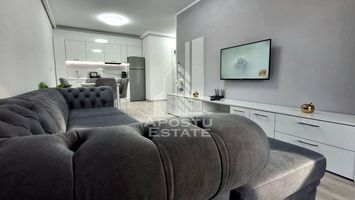 Apartamentul este complet mobilat si utilat; in bucatarie avem un cuptor electric plita hota cuptor cu microunde in living regasim o canapea si un Smart Tv; dormitorul beneficiaza de un pat matrimonial si un dulap spatios suficient pentru depozitarea obiectelor vestimentare iar baia este dotata cu dus