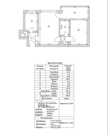 STU - SUPRAFAȚA TOTALĂ UTILĂ: 57 mp,SUPRAFAȚĂ TERASE/BALCOANE: 9 mp