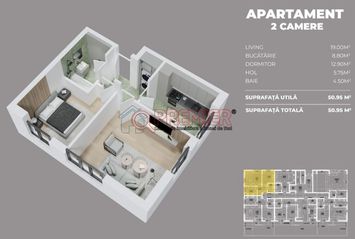 STU - SUPRAFAȚA TOTALĂ UTILĂ: 50.95 mp