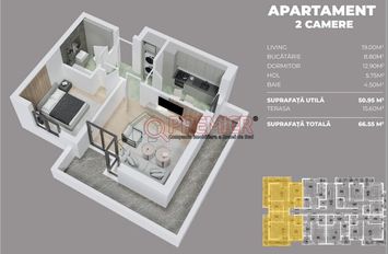STU - SUPRAFAȚA TOTALĂ UTILĂ: 66.55 mp,SUPRAFAȚĂ TERASE/BALCOANE: 15.6 mp