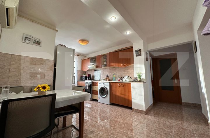 BLITZ vă propune spre vânzare un apartament cu 3 camere, decomandat, 66 mp situat în zona Ampoi din Alba Iulia. Apartamentul este compartimentat astfel: 2 dormitoare, living, bucătărie, dressing, baie cu cadă, debara și balcon închis. Proprietatea dispune de loc de parcare și se vinde parțial mobilată și utilată. Zona este ideală atât pentru cupluri, cât și pentru familii cu copii, fiind foarte aproape de școală, grădiniță, creșă, supermarketuri, stație de autobuz etc. De asemenea, apartamentul este dotat cu aer condiționat și centrală termică proprie. Acesta este situat la etajul 4 dintr-un imobil cu 4 etaje.