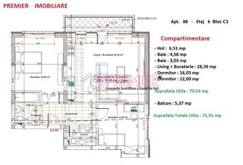 Suprafața utilă 75.91 mp